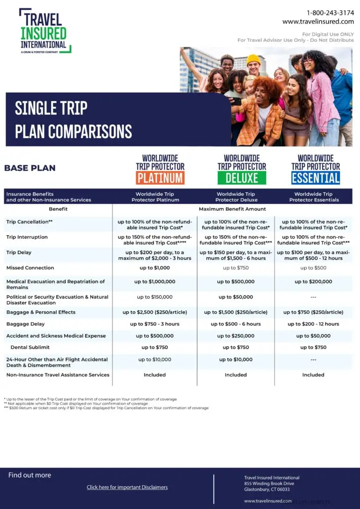 At RJT Travels, we offer travel insurance options through Travel Insured International, a highly reputable provider known for comprehensive coverage and strong customer support when it matters most. Their plans can include protection for trip cancellations and interruptions, medical emergencies, travel delays, lost baggage, and more—giving you peace of mind before and during your trip. While we are not licensed insurance agents and act solely as sales representatives offering pre-designed policies, we are happy to guide you through the available options and help you find a plan that fits your needs. If you would prefer to work directly with a licensed insurance agent, we can also connect you with one. You’re welcome to reach out to us anytime to review coverage options together, or if you prefer, you can click the Image below to begin exploring and purchasing a policy on your own.